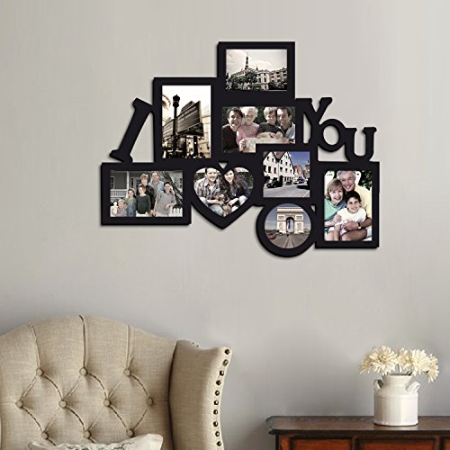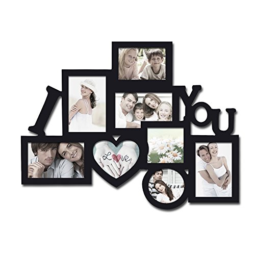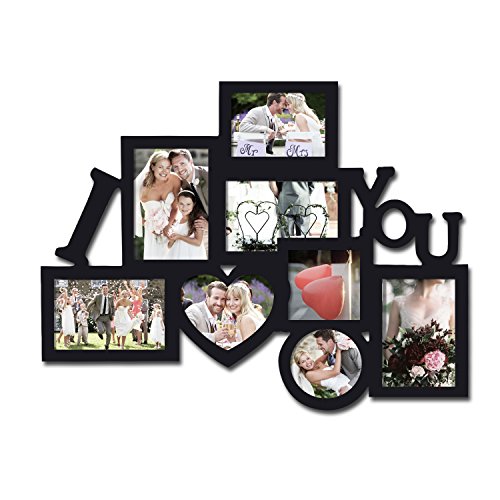 -. Title : Adeco Decorative Black Wood 8 Openings Decorative Wood ''I Love You'' Collage Wall Hanging Picture Photo Frame, 4x6 in, 4.5x5 in, 3.5x5 in and 4x4 in