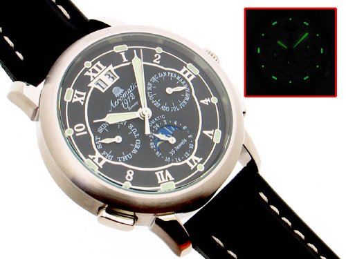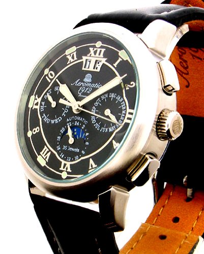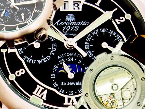 -. Feature : ドイツ製新品A1272 / Aeromatic35石高精度自動巻きムーブメント / 月、曜日、日、サン&モ-ン表示 夜光表示 / 50m防水 ミネラルクリスタル風防 / 純正ケース付、メーカ保証カード付き