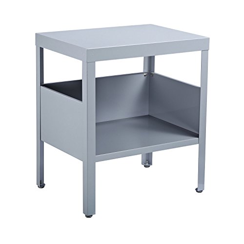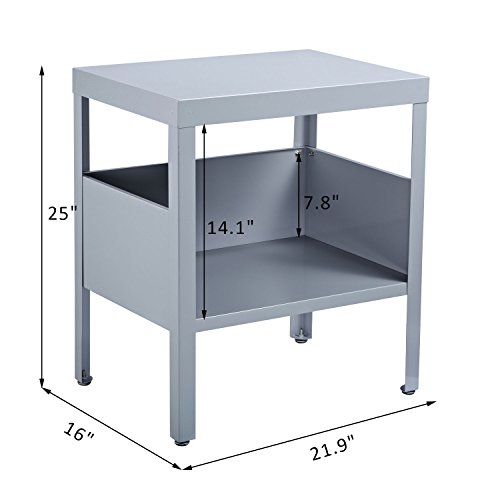Studio : HomCom Publisher : HomCom Product Description Give your home an element of unmatched polish with this HomCom nightstand/end table that is packed with a mid century modern and industrial style. The table is crafted from a sturdy steel frame and offers long lasting durability. The 2-tier design offers a practical storage solution for magazines, books, photo frame, knick-knacks and collectibles and is handy when placed next to the sofa or couch. It's a storage solution that creates modern and stylish appeal in your bedroom, living room, dining room or other home areas. Features: - Crafted of a high-quality steel frame, this side table offers long lasting durability - Light blue finish is able to add a contemporary industrial style to your home decor - 2-tier shelves offer a storage solution for magazines, books, photo frames, and more - Use it as a nightstand or placed next to a sofa or couch as a side or end table - Sturdy and durable enough to hold up to 22 lbs Specifications: - Material: Steel - Color: Grey - Overall Size: 22"L x 16"W x 25.5"H - Lower Shelf Size: 21.5"L x 15.75"W x 7.75"H - Space Between Bottom Shelf Wall and Upper Shelf: 16" - Feet Height: 8.5" - Weight Capacity: 22lbs - Net Weight: 17.6lbs 0