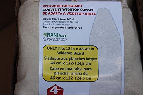 -. Feature : Specifically cut to fit most 18"w x 48-49"l Wide Top Boards. / IRONING BOARD COVER AND PAD WITH STORAGE POCKET / 4mm fiber pad and 100% cotton cover. Attached pocket.