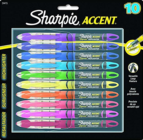 Sharpie Accent Pen Style Liquid Highlighter, Chisel Tip, 10 Pack, Assorted Colors (24415PP)