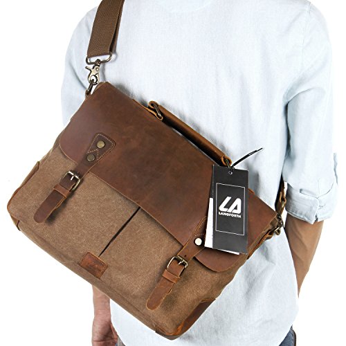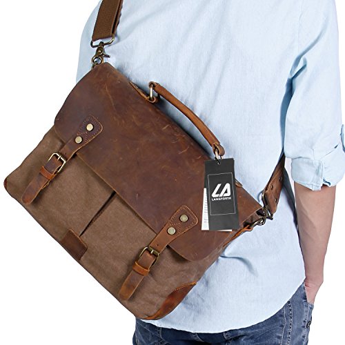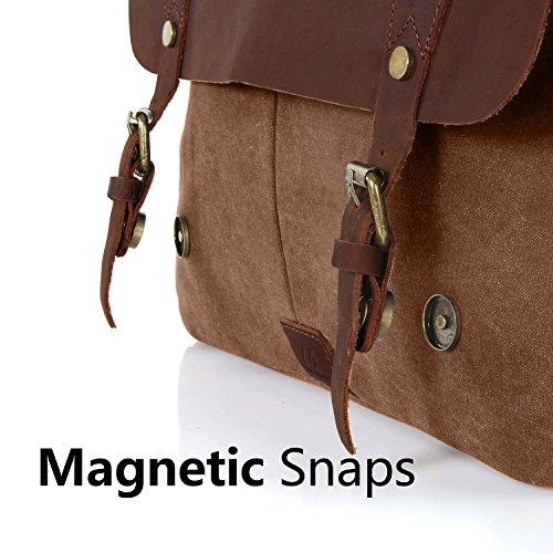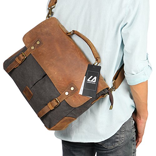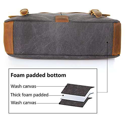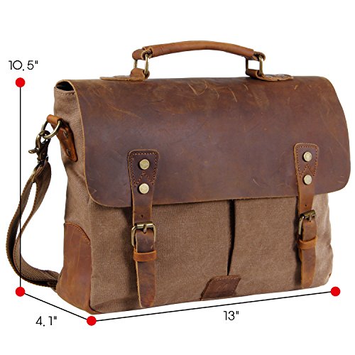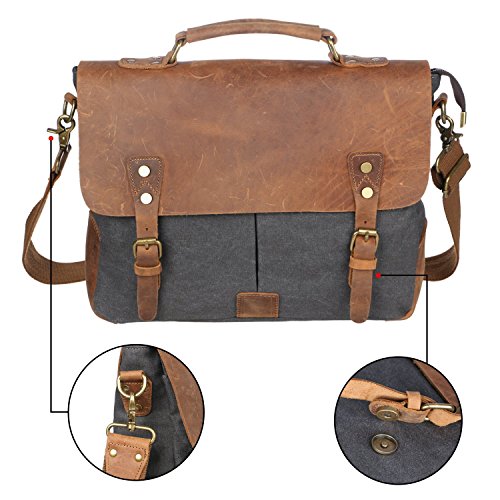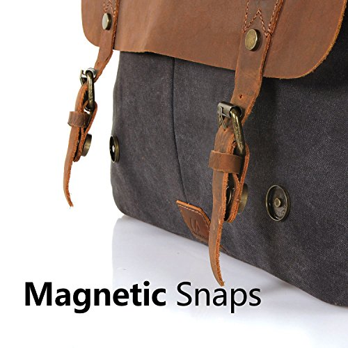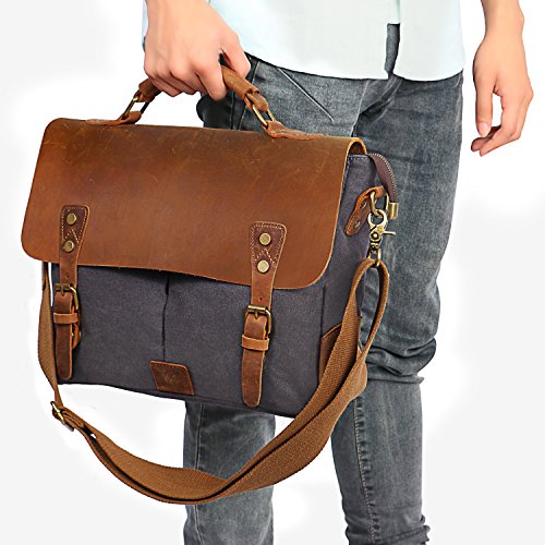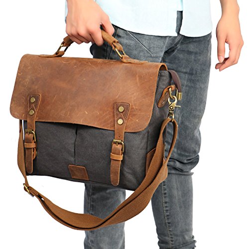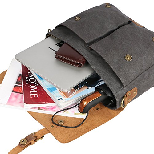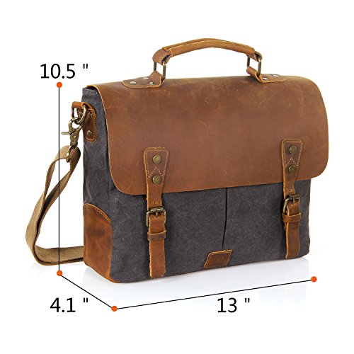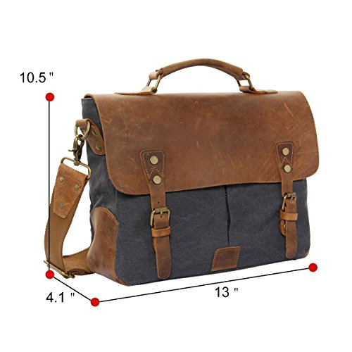 Condition: 100% Brand new? Fabric: Canvas Leather? Lining material: Cotton? Colour: Dark Grey? Size: 34cm(L)x27cm(H)x10.5cm(W)/13"(L)x10.5"(H)x4.1"(W)? Capacity: A4 size magazine, 13/14 inches laptop, ipad and other stuff.? Strap: Adjustable