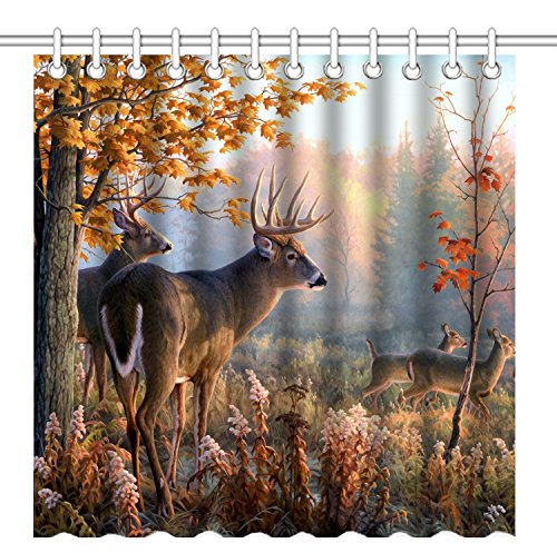 Wknoon 72 x 72 Inch Shower Curtain,Autumn Nature Wildlife Animal Deers Hunting Season,Waterproof Polyester Fabric Decorative Bathroom Bath Curtains