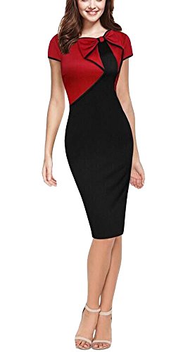 Binding : Apparel Product Description Bow-Knot decor on the neckline and cap sleeve bodycon pencil dress. This elegant OL pencil dress is suitable for working,business,outdoor casual,cocktail party. Size: S, M, L, XL, XXL S Bust/31.9(INCH) Length/39.4(INCH) M Bust/33.9(INCH) Length/39.8(INCH) L Bust/35.9(INCH) Length/40.2(INCH) XL Bust/37.8(INCH) Length/40.6(INCH) XXL Bust/39.8(INCH) Length/41.0(INCH) Our size is one size off, please choose one size up while purchase. Thanks Color difference problem is normal because of different computer resolution and there may be some 1-2 cm size error due to artificial measurement.