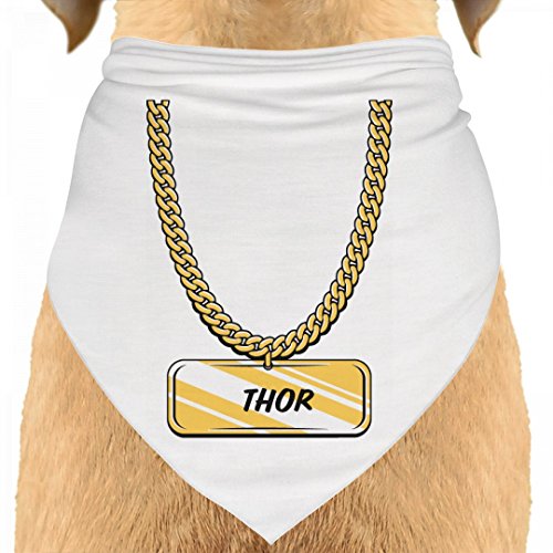 -. Binding : Misc. -. Brand : FUNNYSHIRTS.ORG -. Feature : Custom made and printed on demand when ordered / 5.9 oz, 100% spun polyester / Lightweight and sheer with a soft feel / Moisture wicking / Is your dog's name Thor? Keep your doggie fresh with this bandana that sports a pimp, gold chain and dog tag. Perfect for showing off your pup or puppy. -. Label : Johnson Plastics -. Manufacturer : Johnson Plastics -. Model : 237595-$P -. PackageQuantity : 1 -. ProductGroup : Pet Products -. ProductTypeName : PET_SUPPLIES -. Publisher : Johnson Plastics -. Studio : Johnson Plastics -. Title : Thor - Doggie Gold Chain: Triangle Dog Bandana