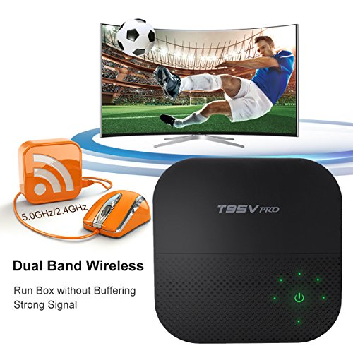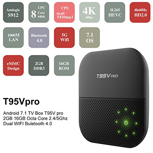 T95V Pro Android TV Box is powered by Amlogic S912, Mali-T820MP3 GPU, and Octa-Core Cortex-A53 64bits up to 2GHz Ultra high frequency, more than 4 times performance improvements, ultra-high quality and configuration provide you with ultra-fast running speed and professional graphic processing ability.