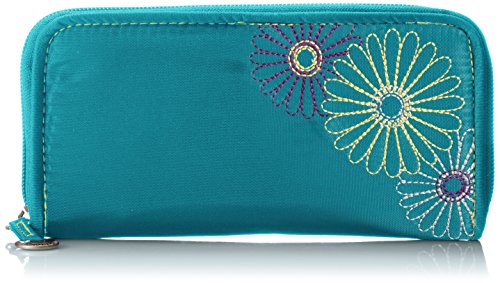 You always want to protect your identity, no matter where you are, so do it with the Travelon SafeID Ladies RFID Wallet. Important documents such as your passport, credit cards, key cards, and drivers license all contain RFID chips that broadcast your personal information. This wallet blocks the transmission of this information, preventing unauthorized access by others. Ideal for everyday use or use while traveling, this wallet includes a total of 8 card slots plus an ID slots for easy organization. Also included are two currency pockets, which are large enough to hold a passport, plus a central zip pouch which is great for coins or other loose items. The wallet zips all the way around to help keep everything secure.