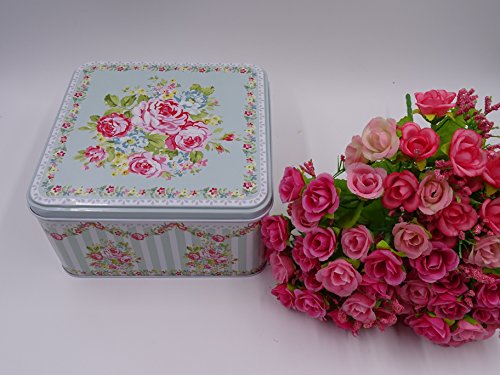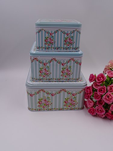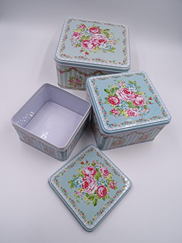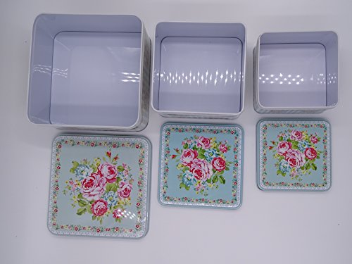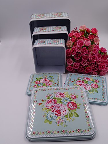 French Style set of 3 Square multipurpose storage tins, shabby chic, with beautiful floral design