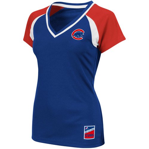 - Title : MLB Majestic Chicago Cubs Ladies Royal Blue-Red The Emerald Premium V-neck Fashion Top