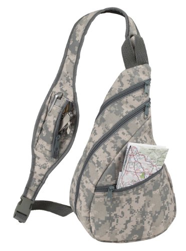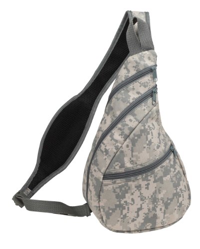 MATERIAL: 600D Polyester SIZE: 9" X 15-3/4" X 4-1/2" IMPRINT AREA: 6" X 3" FEATURE: Zippered main compartment, two zippered front pockets, zippered accessory pocket & pen slot on padded shoulder strap w/ plastic snap buckle, poly-web handle on top. COLORS: Gray Pixel PACKED: 48 PCS./ CTN.