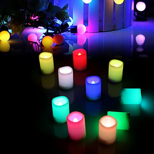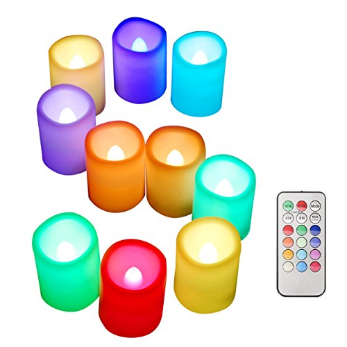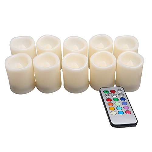 ESHOW Pack of 10, Color Changing LED Flameless Candle Lights White- Real Wax, Nonflammable Battery Operated Unscented Safe Candles w/ Remote Control & Timer, D1.5"xH2" (Multi-color)
