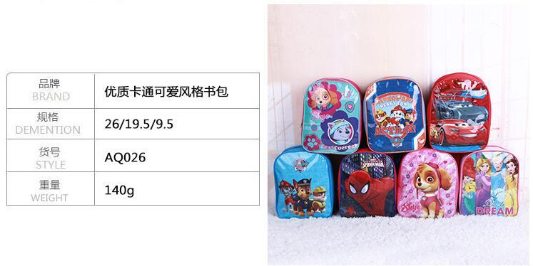 雪奇缘 蜘蛛侠 汽车 狗狗巡逻队 幼儿园儿童小书包