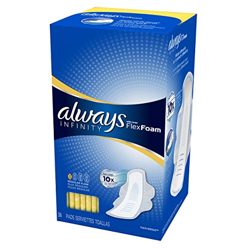 Always Infinity Size 1 Pads with Wings, Regular Absorbency, Unscented, 36 Count (Pack of 3), Packaging May Vary