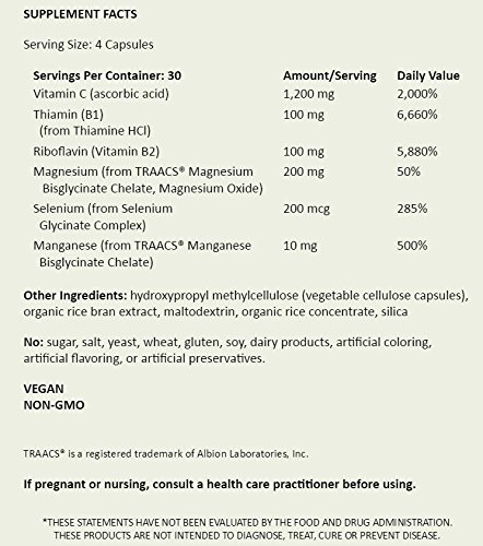-. Feature : Selenium acts synergistically with iodine and plays a role in iodine's availability to cells. Additionally, selenium protects the thyroid gland from oxidative stress, which may occur during the conversion of iodide to iodine.* / Vitamin C supports healthy tyrosinase activity, a required enzyme for energy metabolism and thyroid hormone production.* / Thiamin (B1) helps activate the thyroid hormone and thyroglobulin protein production.* / Riboflavin assists iodine in the synthesis of the thyroid hormone, thyroxine (T4).*†† / Magnesium improves the absorption and utilization of iodine.* Manganese is essential for the conversion of glucose to cellular energy and aids in iodine's support of balanced metabolism.*