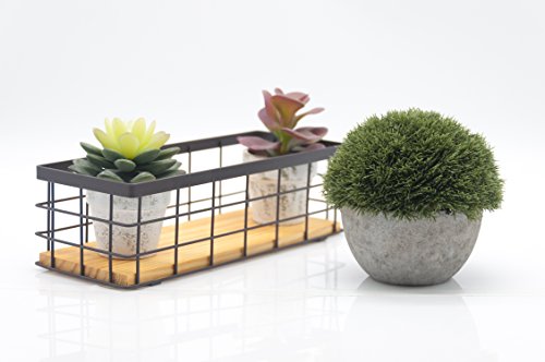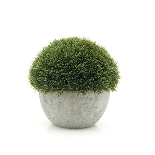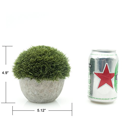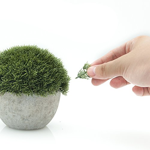 Velener Mini Artificial Fake Green Plant in Grey Pot for Home Decor (Pine Ball)