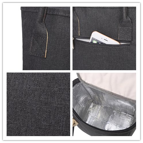 - Quality assurance:Light weight, easy to clean, waterproof, durable,Insulated ,Cooler,Convenience,Reusable.Interior insulated lining is Eco-friendly and food safe with very rich storage space. Back pocket,Conveniently placed bus cards, And other small items.