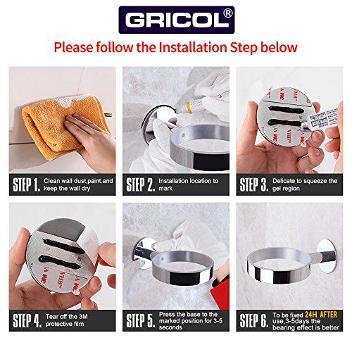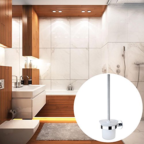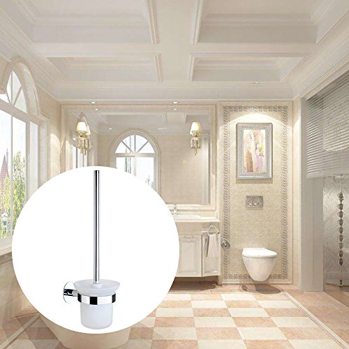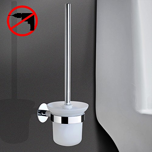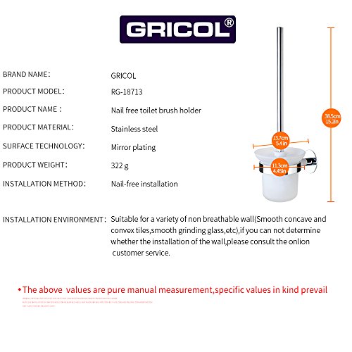 Gricol Bathroom Self Adhesive Toilet Brush Holder Wall Mount Stainless Steel Holder Frosted Cup Modern Square Style Polished Finish