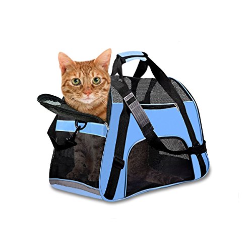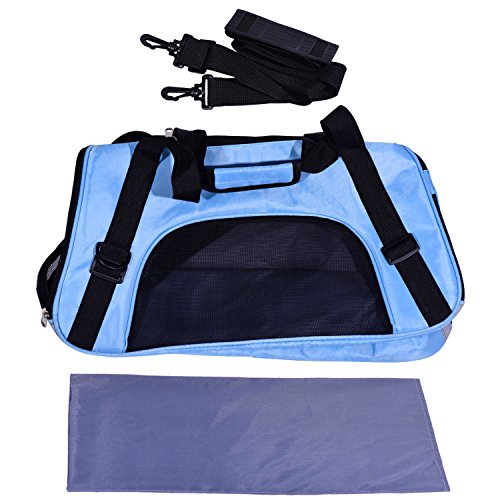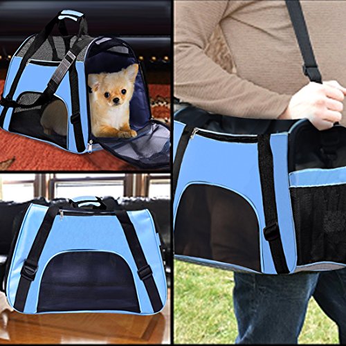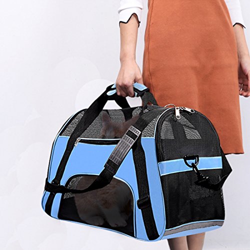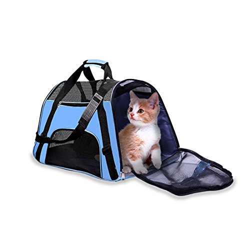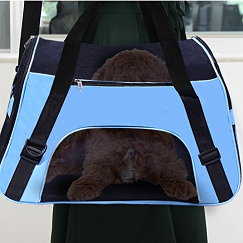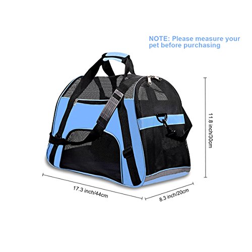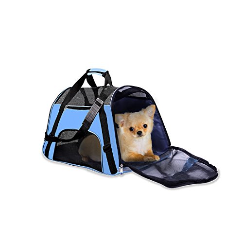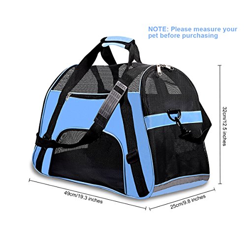 -. Feature : Portable and Airline Approved: our pet carrier just weigh two pounds so it's very portable. It is airline approved so you can carry your lovely pets while traveling, makes you and your pets enjoy the happy time together. / Soft-sided pet travel carriers with comfortable padding inside, plenty of ventilation, carry-handle and adjustable padded shoulder strap. / Do NOT select the carrier size based on weight only. Choose the carrier size based on your pet's measurements first, then make sure not to exceed the maximum weight limit. / Safe and Convenient Design: the floor of this dog bag is strong and sturdy, holds its shape firmly when in use. It also has a removable padded shoulder strap and can be unzipped to fold flat for storage. / Sleek Design and Waterproof Material: Our pet bag is sleek designed, this bag is made from waterproof fabrics, so it's easy to clean.