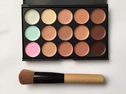 -. Feature : Size:Concealer:15.4cm x 10.2cm x 1.3cm;Brush total length: approx. 140mm/5.5 inch. / Material:FiveBull concealer made of natural plant ingredients,nature is very gentle,don't stimulate your skin;brush made of synthetic fiber that is soft and comfortable for use. / Color:An extensive range of 15 multiple vibrant concealer colour with different skin tones,soft and smooth texture,natural colors,creates clear and fascinating makeup,silky glossy color care skin around and can last for all day long. / Benefit:Concealer provides total camouflage for almost any skin problem including blemishes, scars, birthmarks and black circles,convenient and easy to put on,easy to apply,very blendable to create the shade you need.Brush used for applying liquid foundation,cream or powder foundation,blush or even for contouring and blending. / Pakage Includes: 1 Set Concealer Palette with 1 Piece Beauty Make up Brush.