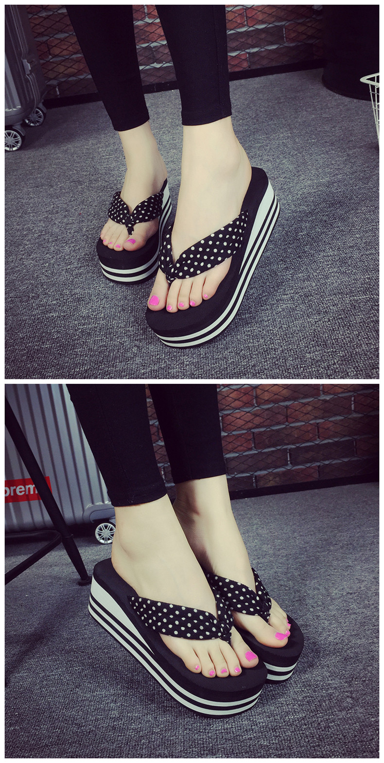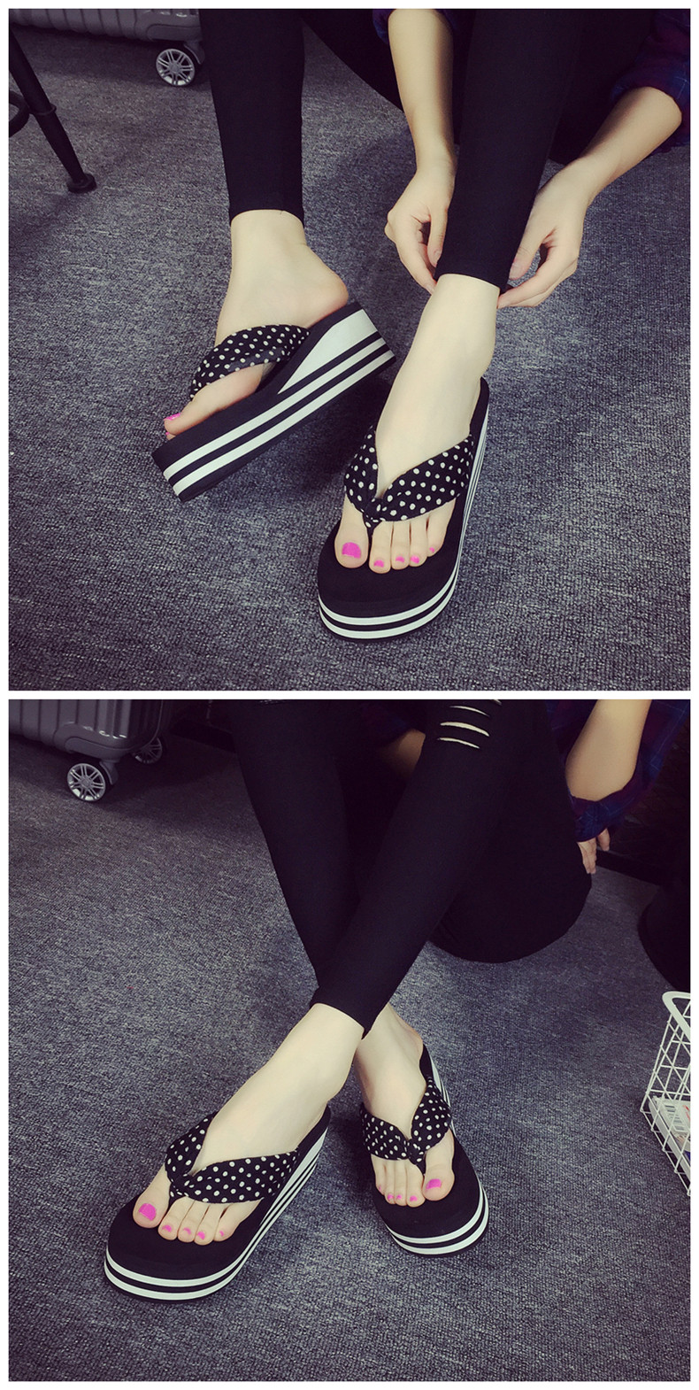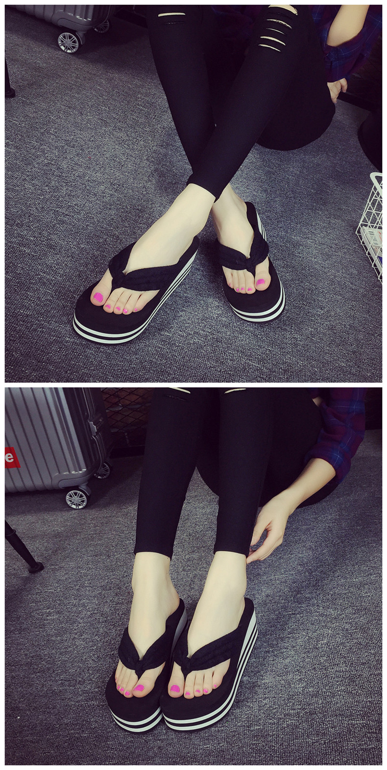 韩版松糕凉拖鞋女夏坡跟厚底人字拖简约夹脚沙滩鞋时尚