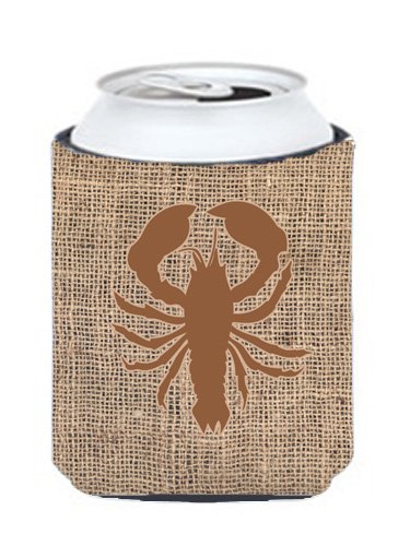 Lobster Burlap and Brown Can or Bottle Beverage Insulator Hugger