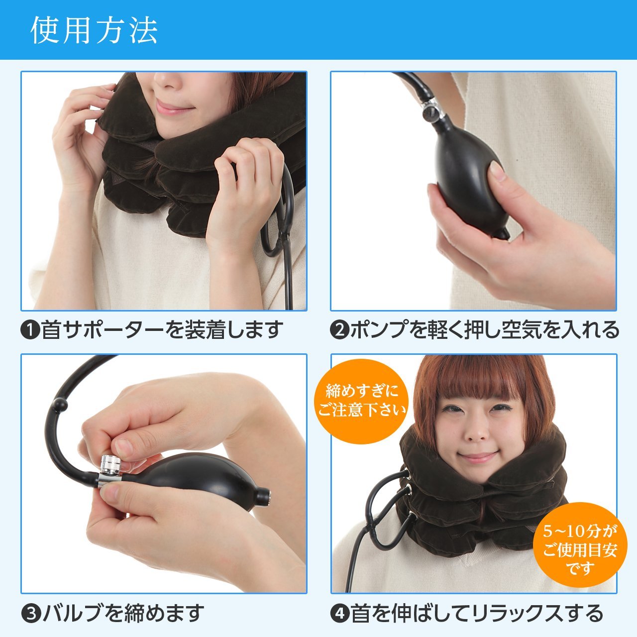 · If you put too much air, please be sure to adjust while gradually adjusting because there is a risk of damage and neck tightening.