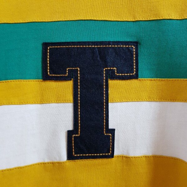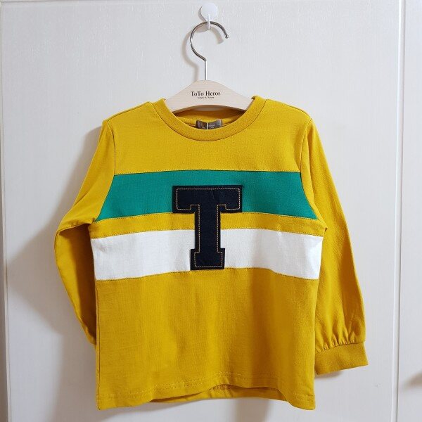 이니셜긴팔티입니다. 옐로우색상의 이니셜 와펜이 포인트인 귀여운 티셔츠입니다.