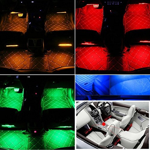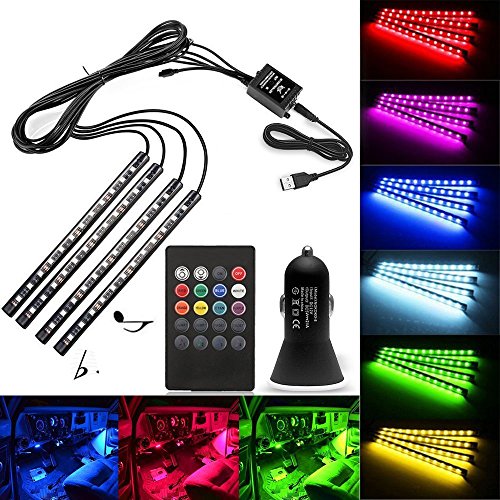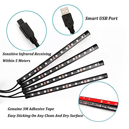 Topled USB Port Car LED Strip Light, 4 x 22cm Waterproof SMD5050 RGB Multicolor Car Strip Light Lamp Lighting Set + Sound-Activated IR Remote Control + Car Charger