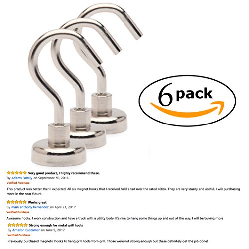 XL Heavy Duty 40 lbs Strong Neodymium Magnetic Hooks for Storage and Organization Each Heavy Duty Hook Holds 40 lbs of Home Kitchen Accessories, Sports & Outdoors Equipment and Gardening Tools