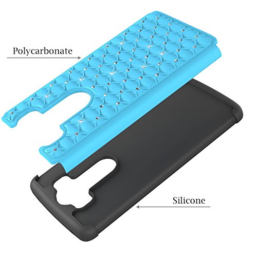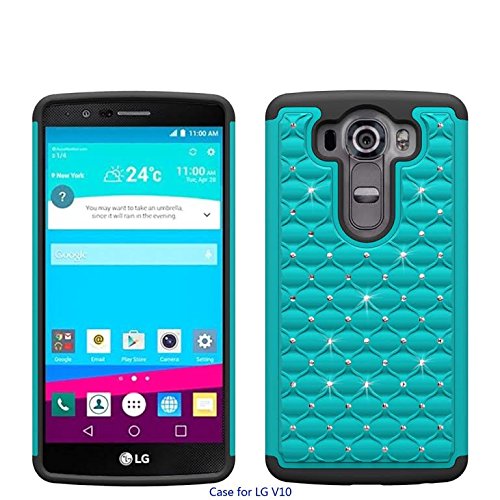 LG V10 Case (TMOBILE/VERIZON/AT&T), Teal on Black Skin Spot Diamond Studded Bling Crystal Rhinestone Dual Layer Hybrid Cover Silicone Rubber Skin Hard Case For LG V10 Cover