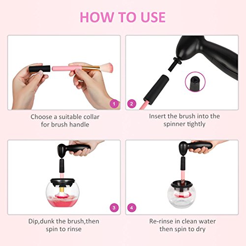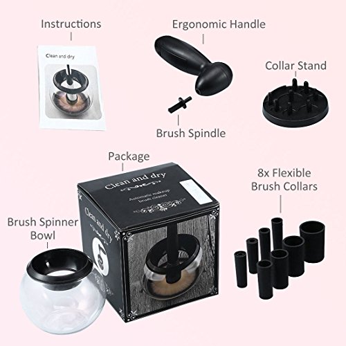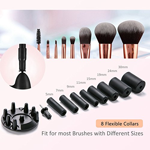 - ❤ Wide Applicability: 8 sizes of rubber collars, suitable for 98% makeup brushes on the market. It’s also very easy to use. All you have to do is Dip, Rinse, and Spin to dry. Save your time and keep your hands off water. Save your money and unnecessary buy new brushes frequently