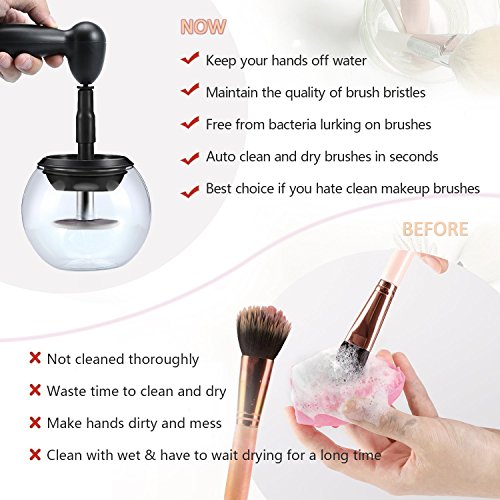 - ❤ Auto clean and dry in seconds: The makeup brush cleaning machine work with 13000 rotation per minutes. Just in 15-30 seconds, your makeup brushes are immediately ready to re-use