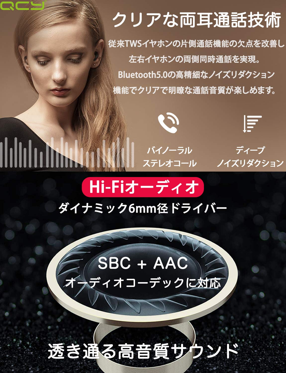 - ✅️【 快適な超低遅延 ・ HiFi高音質オーディオ 】 QCY T1は、強力な高速伝送効率を持つBluetooth5.0技術により、ほとんどゼロに近い超低遅延の同期を実現し、細かく分析された臨場感溢れるオーディオをリアルに楽しめます。《 SBC + AAC 》オーディオコーデックに対応。ダイナミックな6mm径ドライバーを搭載し、超小型 / 超軽量でありながら、音楽本来のサウンドエフェクトを充実に再現し、音楽の深みを広げ、臨場感、空間感を限りなく表現します。 ✅️【幅広い互換性】 AppleのiPhone、アプリ、iPod、サムスンギャラクシーノートシリーズ、Androidデバイス、MP3やMP4音楽プレーヤー、ノートパソコン、タブレットやPCなど、ほとんどのBluetooth対応機器との互換性に対応します。