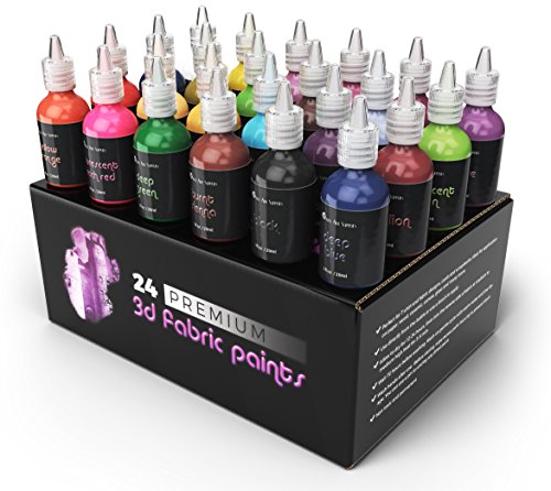 Castle Art Supplies 3D Fabric Paint Set - 24 Premium Vibrant Puffy Colors Perfect for Clothing, Canvas, Glass and Wood - Non Toxic, Safe for Children