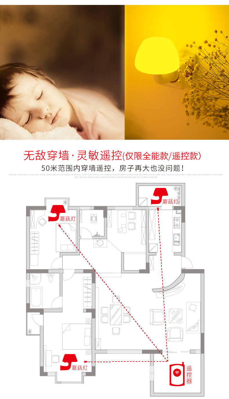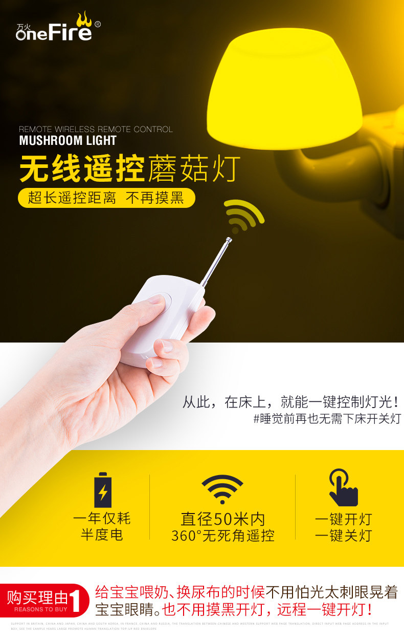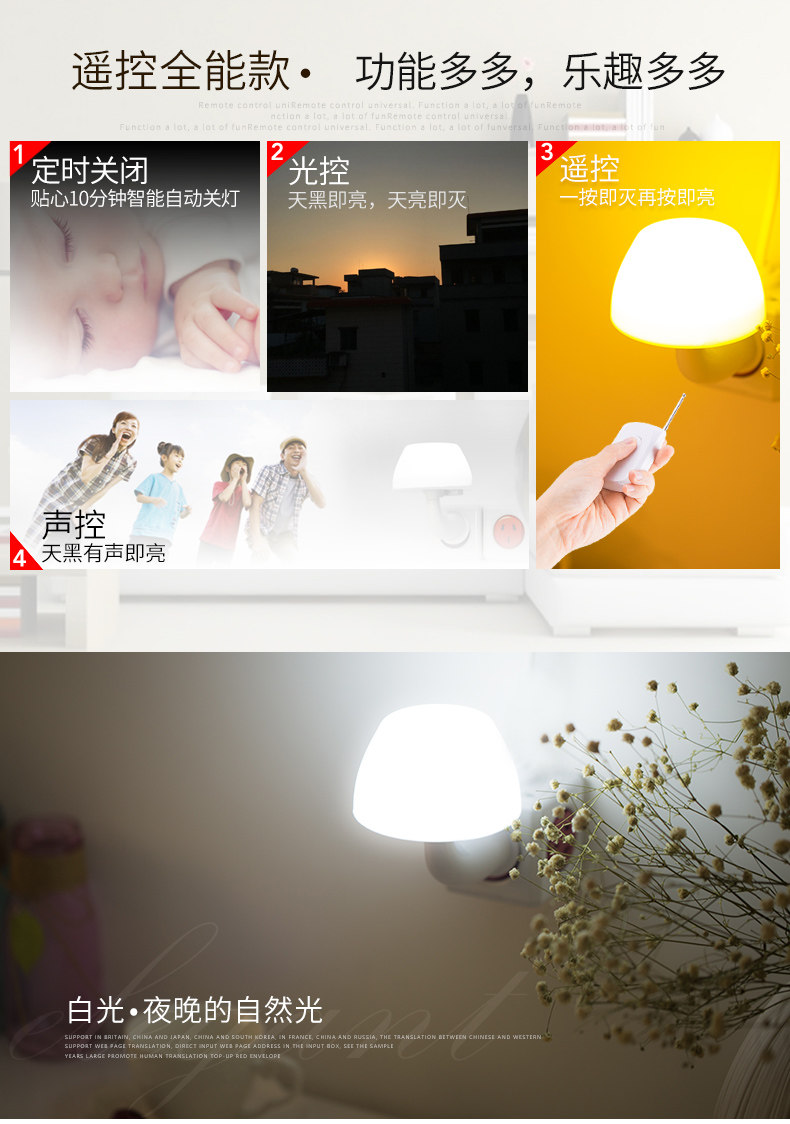 󰄬无线遥控led小夜灯插电卧室床头喂奶插座台灯超亮节能壁灯带插头
