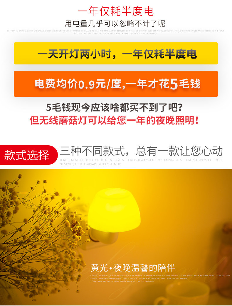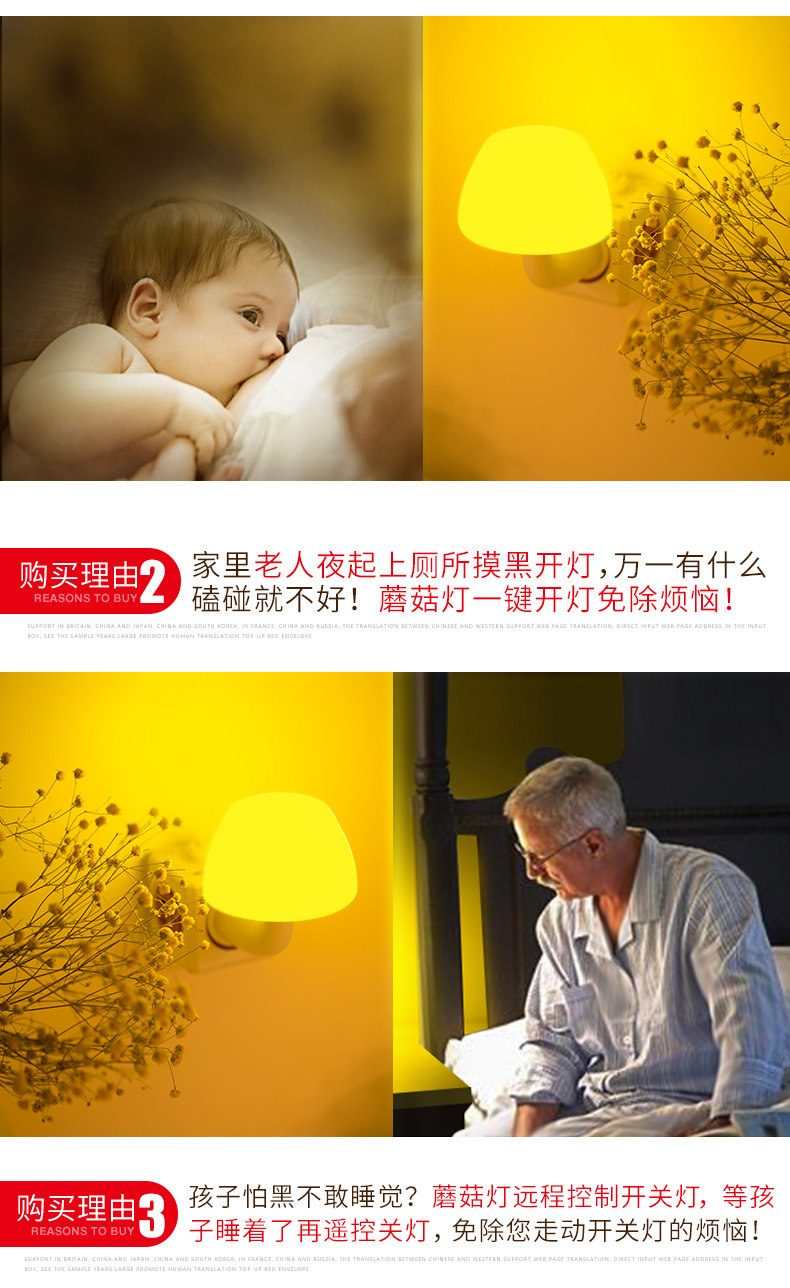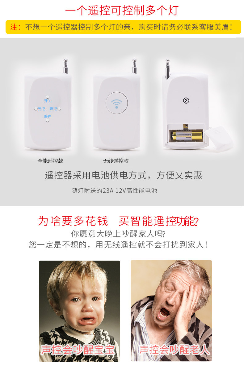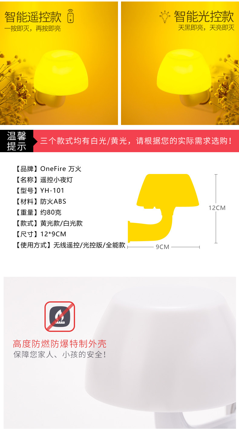 󰄬无线遥控led小夜灯插电卧室床头喂奶插座台灯超亮节能壁灯带插头