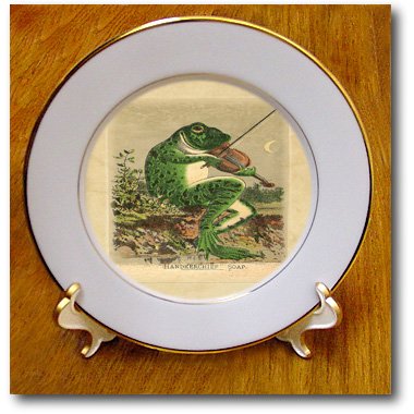 3dRose cp_194991_1 Print of Frog Plays Violin on Soap Ad Porcelain Plate, 8-Inch