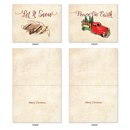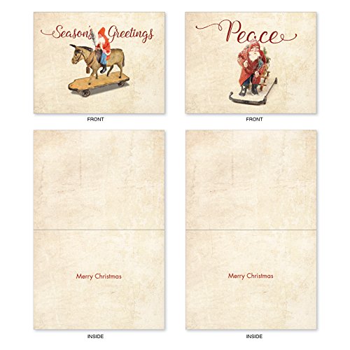 10 beautiful assorted (4'' x 5.125'') Merry Christmas note cards & white envelopes.