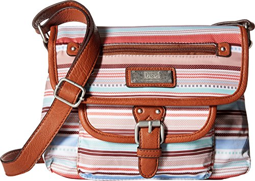 Snap-flap closure. Adjustable crossbody strap. Exterior features zip pocket and slip pocket at front, brand plaque detail, and polished hardware. Flat, branded base. Lined interior flaunts back wall zip pocket and two slip pockets. Imported.