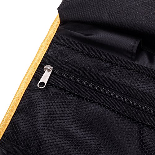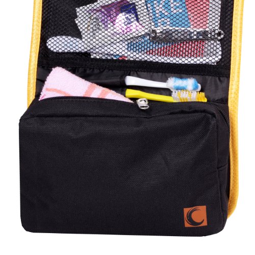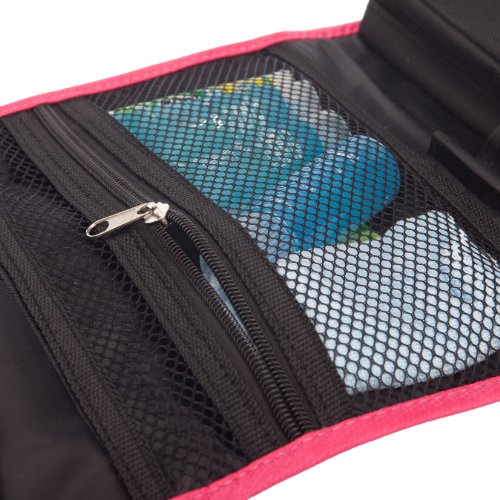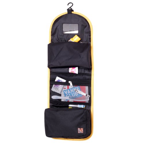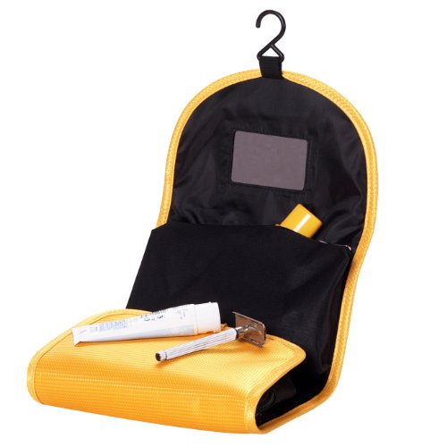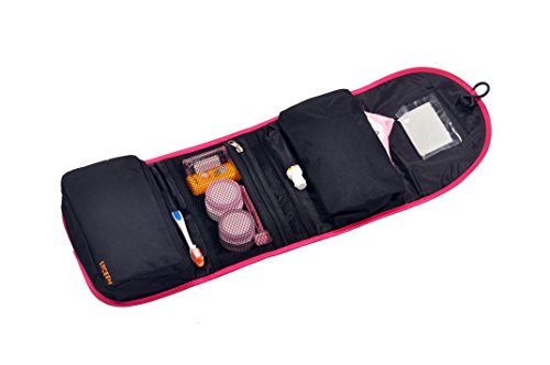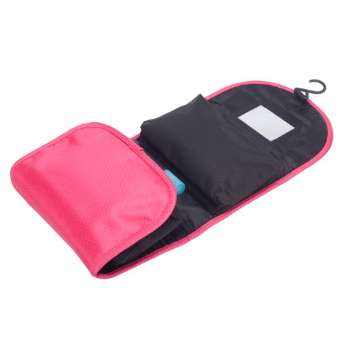 - Feature : Material: durable 600D polyester / Size: 9.1*6.6*2 inches (23*17*5cm) / Foldable design: Large Capacity but Lightweight and Space Saving / Useful hand strap and build-in hook: Carrying your toiletry bag would be very easy with the useful hand strap. And the build-in hook enables you to hanging it on the wall or hanging behind the door and thus saving space for you as well as keeping your accessories organized. / Thanks to the foldable ability, the Convenient hanging toiletry bag is featured by its lightweight and space saving. Travel itself is relaxing and pleasing; however, the heavy luggage can be an annoying problem sometimes. Now taking this convenient toiletry bag with you, you will feel free to enjoy your journey to the best.
