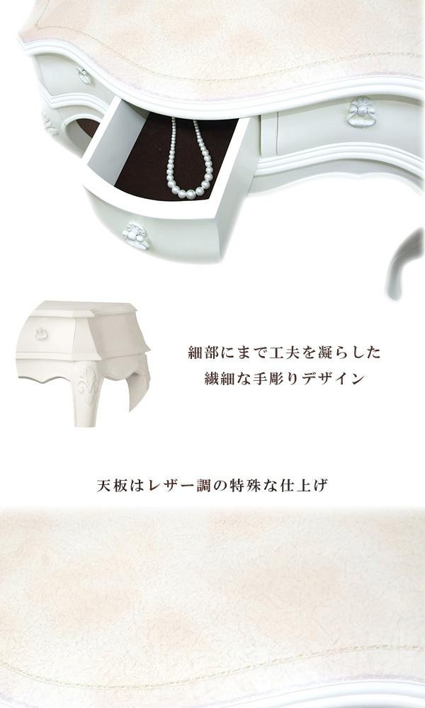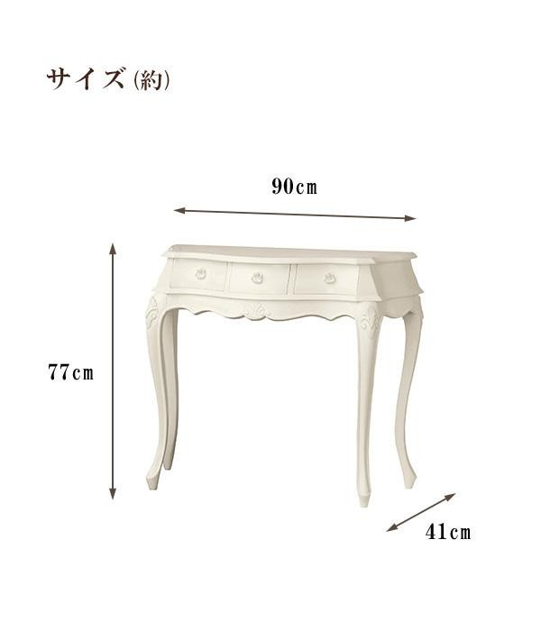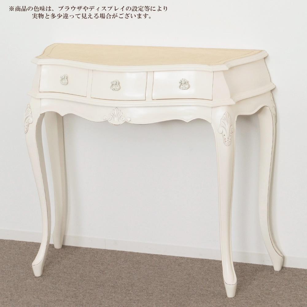 | 天板はレザー調の特殊な仕上げになっており、ネコ脚、手彫り仕上げ、引出内部の底はフェルト貼りなど、細部にまで工夫を凝らしています。玄関やリビング等におすすめです。 |