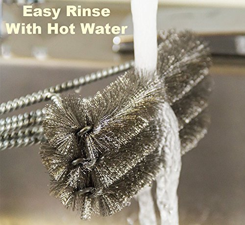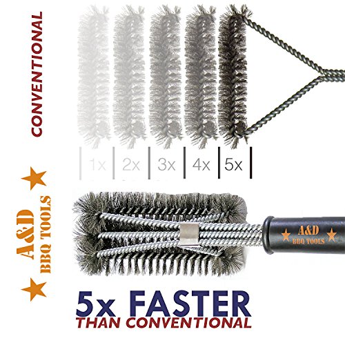 ★ STAINLESS STEEL BRISTLES with newly invented configuration to last longer while being a 100% rust proof, dishwasher safe, taking as much as 3 times less to make your grill sparkled clean.