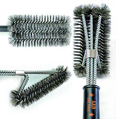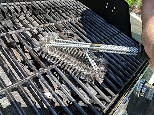 Grill Brush, 3 in 1 18" Best BBQ Grill Brush. Safe For All Grills Stainless Steel grill cleaning brush, Great Cleaner & Scraper for Grill Cooking Grates, Racks, & Burners