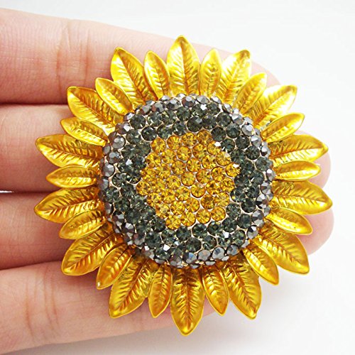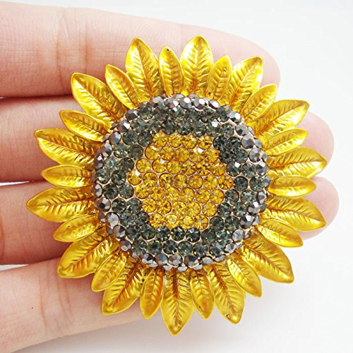TTJEWELRY FASHION JEWELRY CHARMING SUNFLOWER FLOWERS YELLOW RHINESTONE CRYSTAL BROOCH PIN