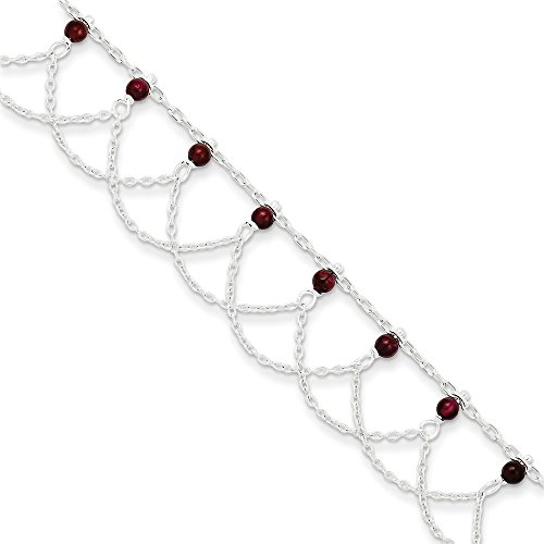 Material Purity: 925Finish: PolishedStone: Garnet (Rhodolite)Chain Length: 10Chain Width: 1Clasp/Connector: Spring RingMaterial: Sterling SilverJewelry Type: AnkletsAnklet Type: GemstoneMaterial Color: WhitePolishedSpring RingSterling silverRhodolite garnetFeature
