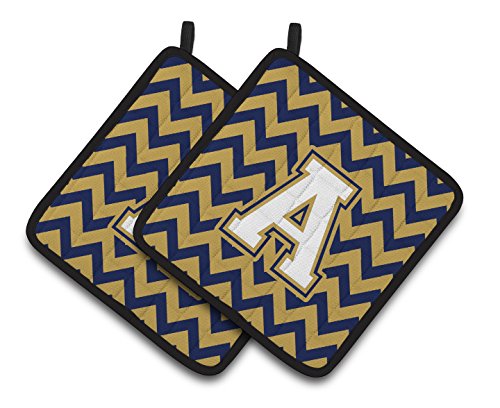 Caroline's Treasures Letter A Chevron Navy Blue & Gold Pair of Pot Holders CJ1057-APTHD, 7.5HX7.5W, Multicolor