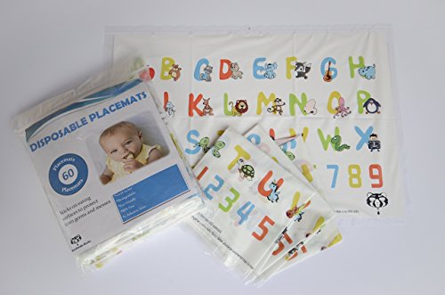 -. Title : 60 Count Disposable Placemats baby,Toddler, Child Educational ABC & 123 Design - Extra Adhesive Backing, Peel and Stick for Table Top