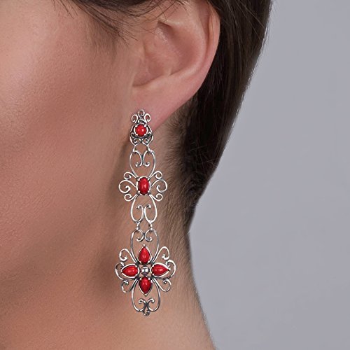 Make a statement! If you're looking for a showstopper, these earrings are the perfect addition to your jewelry collection. Featuring openwork sterling silver designs and substantial cabochons of red coral, these earrings can take you from day to night.