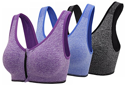 -. Feature : Seam-free removable molded cups encapsulate and compress to protect breast tissue from damaging horizontal,vertical and circular motion / Racerback Design - For enhanced range of motion,with extra support and comfort;Push yourself harder,longer and faster / Front Zip Style - Anti slide Zipper protect from sliding down when doing exercise,Front fastening also with Zipper protect device against friction and your Skin are well protected,Moving comfort and support all day / Breathable,high performance fabrics,smooth and stretchy fabric provides exceptional moisture wicking to keep you comfortable / Comfortable - Designed for comfort perfect for running. This product can be used under garments for support or as a outer garment for racing or training