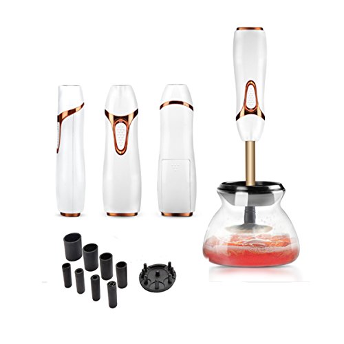 [PACKAGE INCLUDED]: The makeup brush cleaner kit includes 8 rubber holders, a brush spinner, a plastic bowl, splash guard ring and a brush holder stand. The brush cleaner needs 2 AAA battery Operated (batteries not included).
